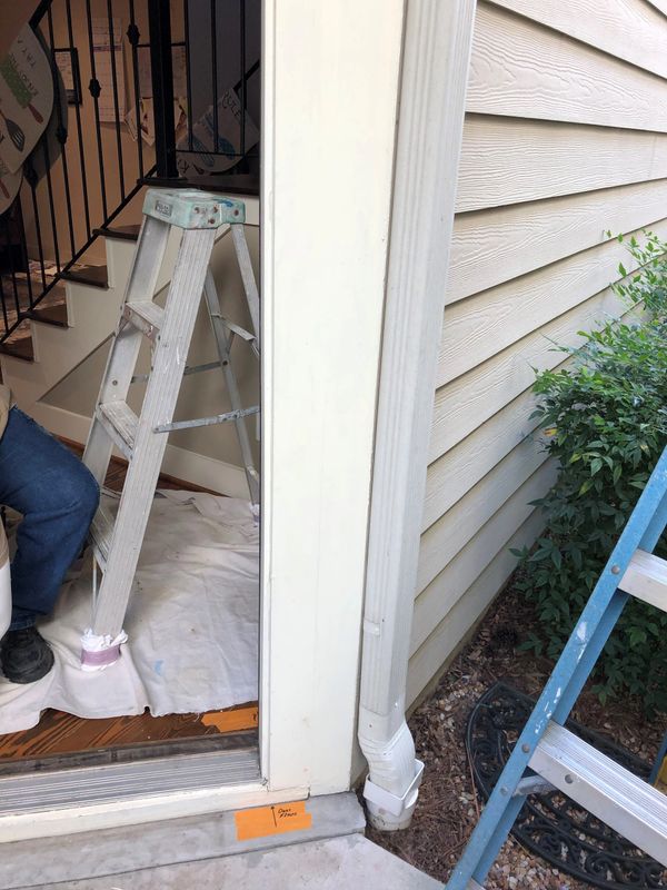 Finished Installation of new metal door with fresh coat of paint sprayed on.
